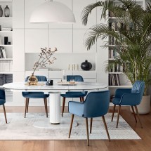 Cu o estetica eleganta, masa Apian adopta o abordare de design arhitectural si a fost realizata cu meticulozitate din materiale rafinate. Look-ul aerisit aminteste de o tabla de metal curbat.. -
