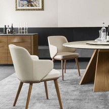 Familia de scaune Wind, disponibila in versiuni de scaun, fotoliu si taburet, isi intampina oaspetii cu o imbratisare calda, datorita extinderii spatarului pe lateralele sezutului. Un design.. -