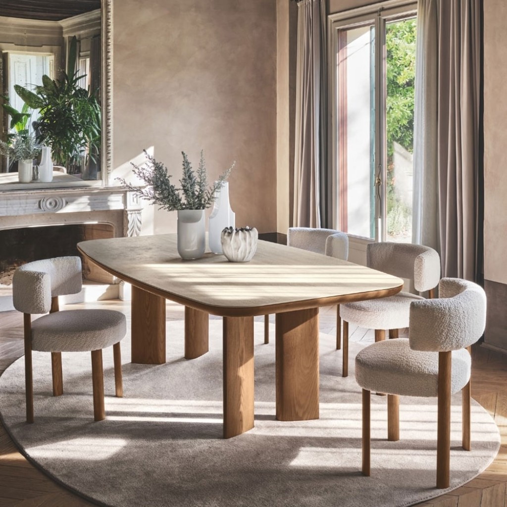 Dogma este o masa extensibila de dimensiuni generoase, conceputa pentru confort. Forma dreptunghiulara simpla se intalneste cu caldura picioarelor din lemn fin lucrat, exprimand in acelasi t.. -