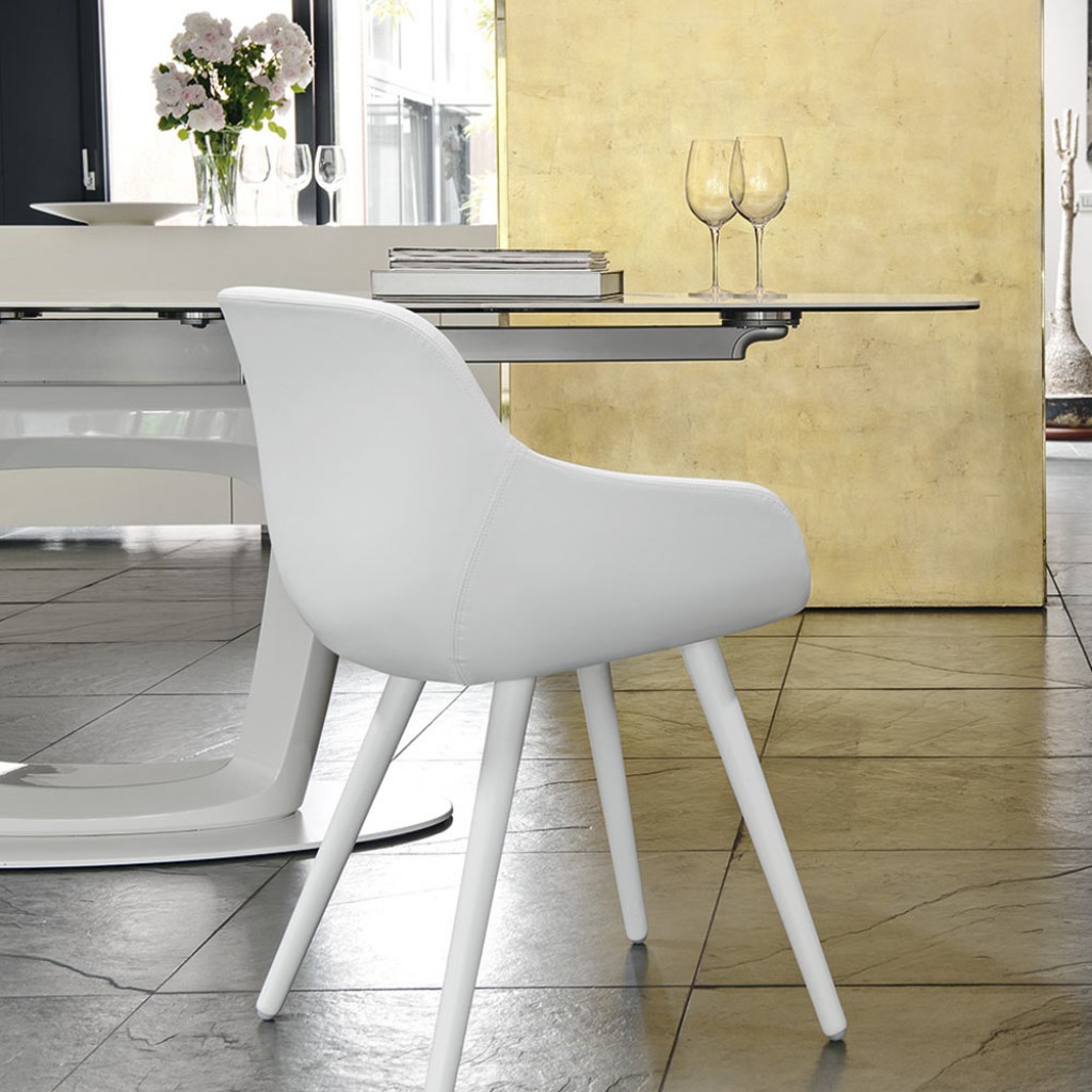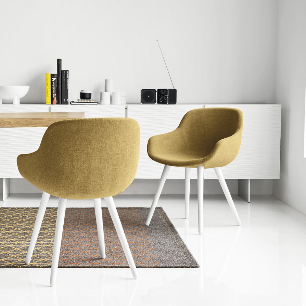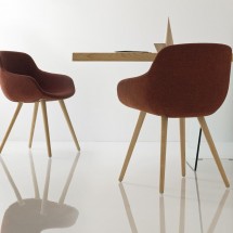 Denise este un scaun tapitat cu cadru din otel, cu forma ergonomica si flexibila a scaunului. Picioarele cromate sunt pictate sau tapitate. Spatarul poate avea dimensiuni generoase sau mai r.. -