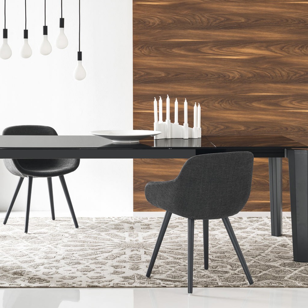 Dogma este o masa extensibila de dimensiuni generoase, conceputa pentru confort. Forma dreptunghiulara simpla se intalneste cu caldura picioarelor din lemn fin lucrat, exprimand in acelasi t.. -