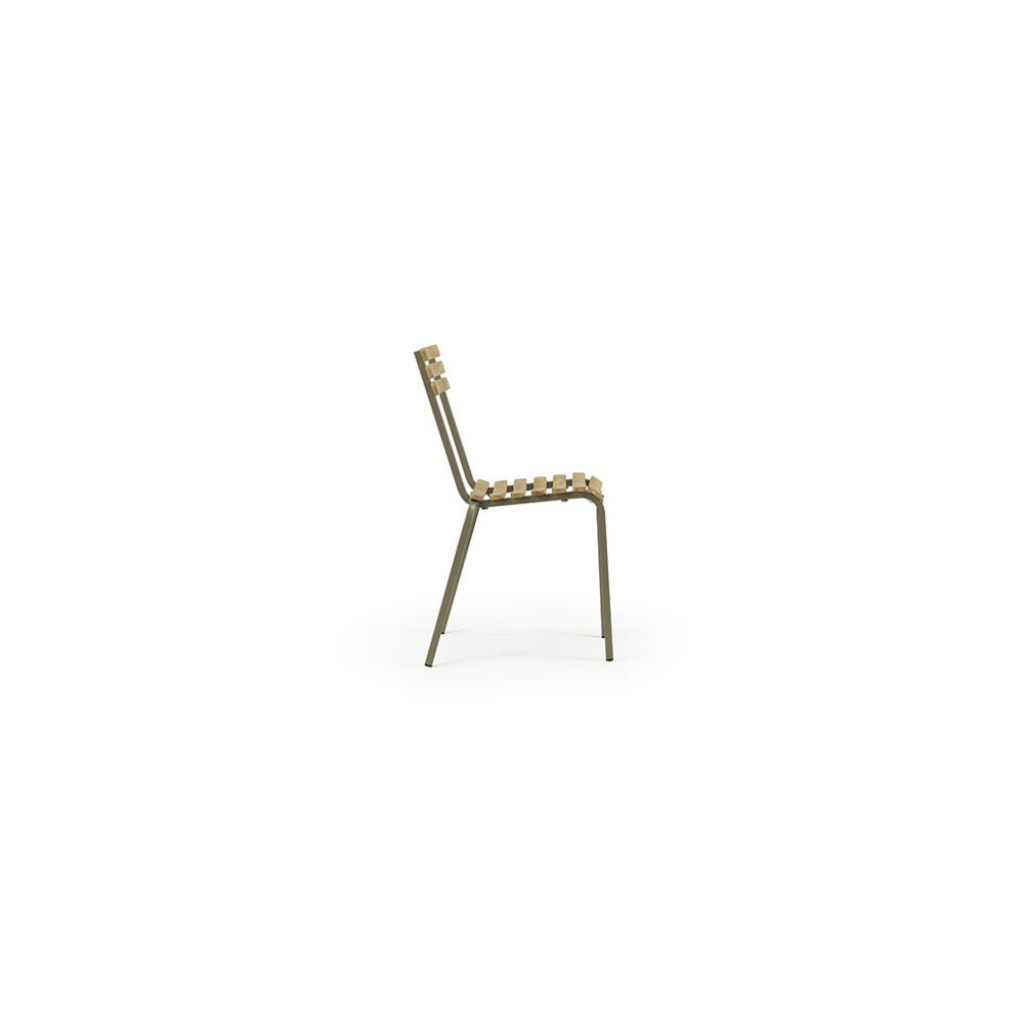 Fotoliile si scaunele din gama Laren au cadrul din metal si suprafata din lemn de tec.