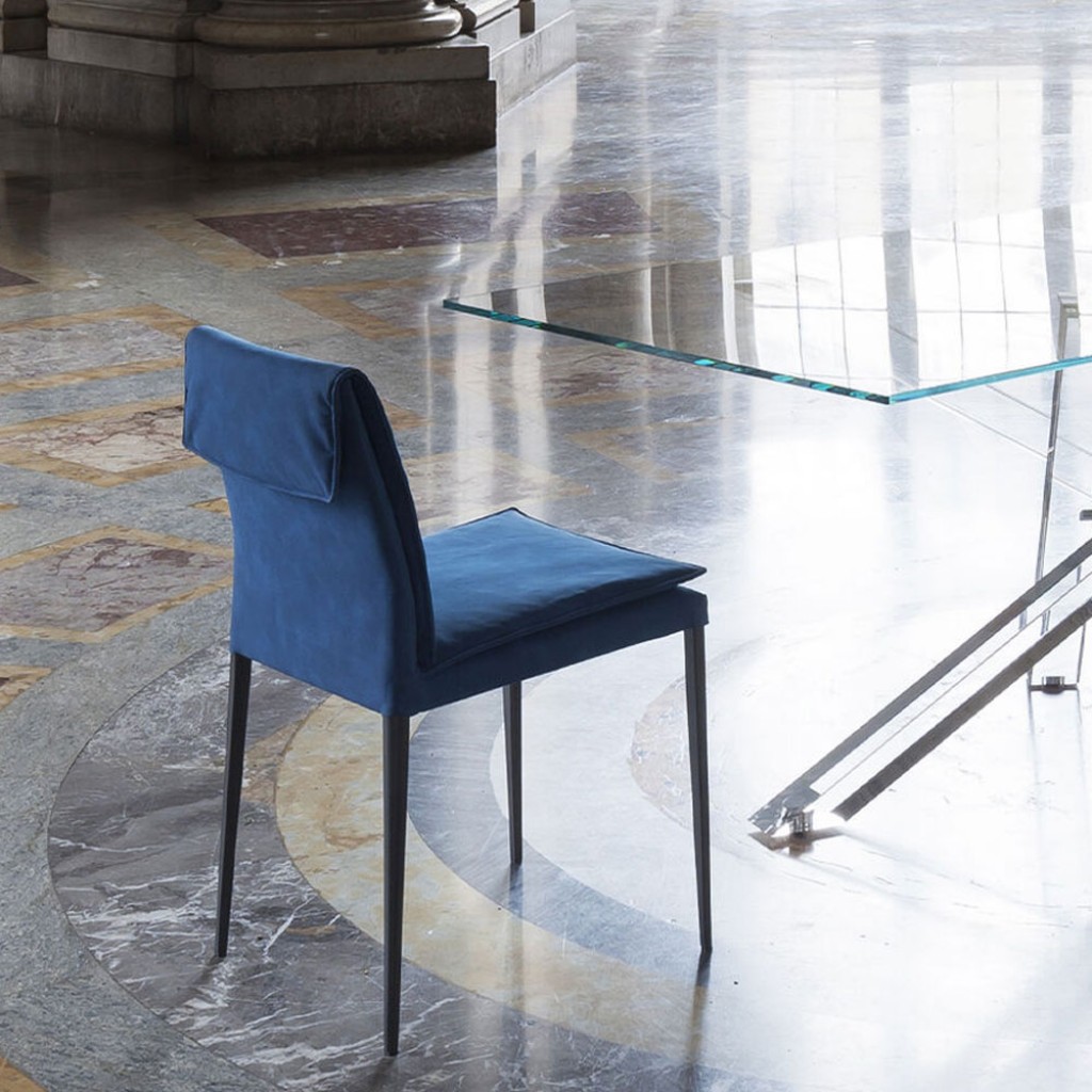 Scaunul Mavi are un design deosebit si atractiv cu o clapeta prelungita in partea din spate a spatarului, ce subliniaza un aspect elegant si contemporan. Poate fi comandat in varianta cu sau fara cotiera, in diferite tesaturi si nuante.