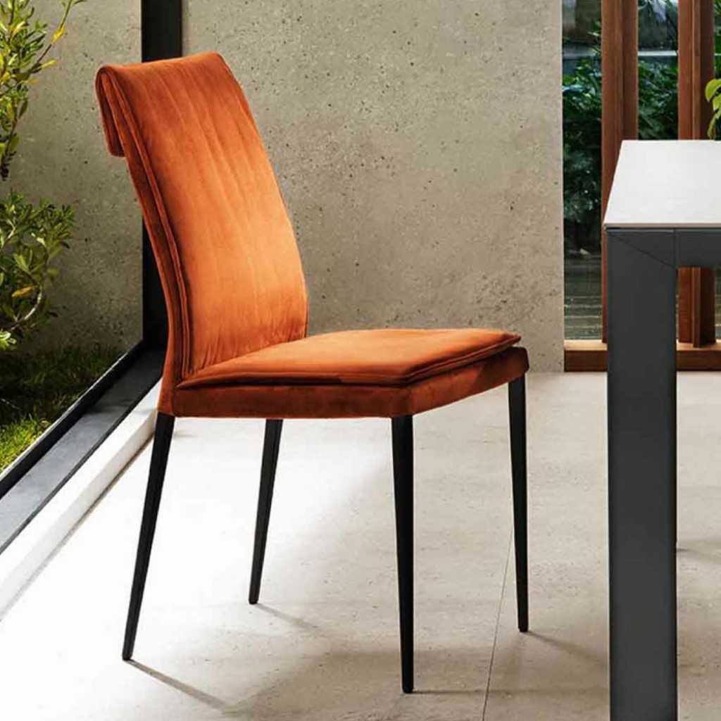 Eva este un scaun cu cadru metalic, tapitat complet la sezut si spatar, cu un aspect elegant perfect pentru a completa orice interior. Husele nu sunt detasabile.DimensiuniL 42 X H 97 X P 52.. -