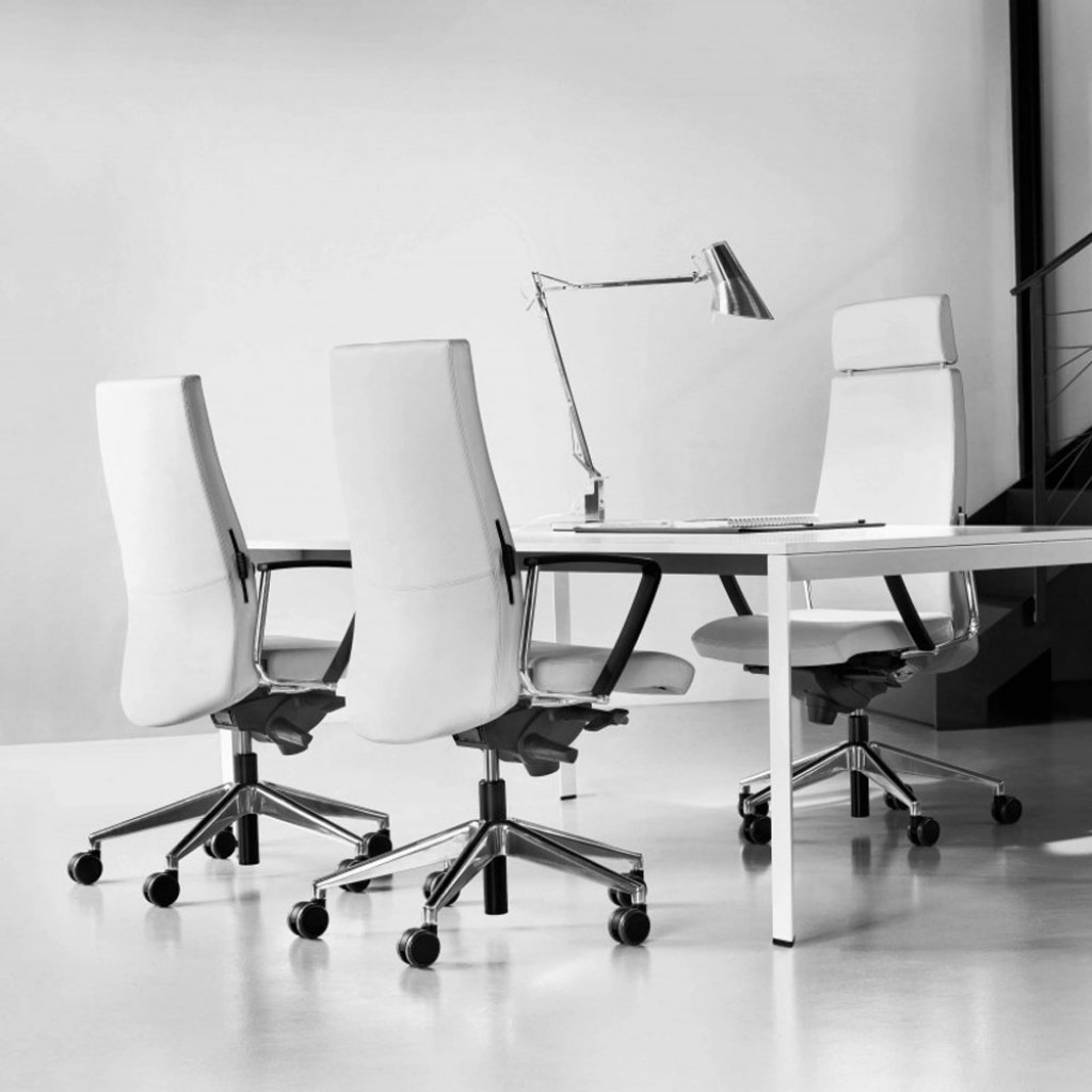 O alegere interesanta atat pentru confort, cat si pentru versatilitate. Spatarul subtire include suport lombar ergonomic, iar scaunul poate fi echipat optional cu un sistem inovator de arcuri ideal pentru perioade lungi de lucru.