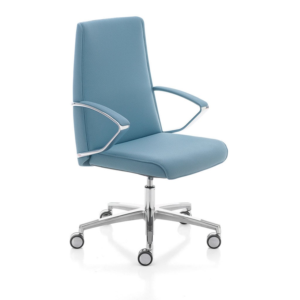 Scaunul executiv Klivia are un spatar inalt sau mediu, tapiterie disponibila cu sau fara cusaturi liniare. Noul mecanism de sincronizare si auto-ridicare este integrat in scaun si vine si cu un sistem simplu pentru ajustari functionale. Bratele sunt fixate in spatar si sunt facute din aluminiu lustruit ca partea de sus.