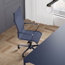 Scaun executiv din mesh, care se remarca prin linii subtiri si forma inovatoare a cotierelor.Dimensiuni:Inatime - 101-118 cmLatime - 68 cmSezut - 53 cmGreutate - 14,5 kg.. -
