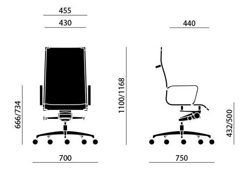 Scaun executiv cu linii moi, asemenea unui fotoliu, tapiterie matlasata.Dimensiuni Canasta 1:Inatime - 106-116 cmLatime - 64 cmSezut - 52 cmGreutate - 14,5 kgDimensiuni Canasta 2:Inatime - 9.. -