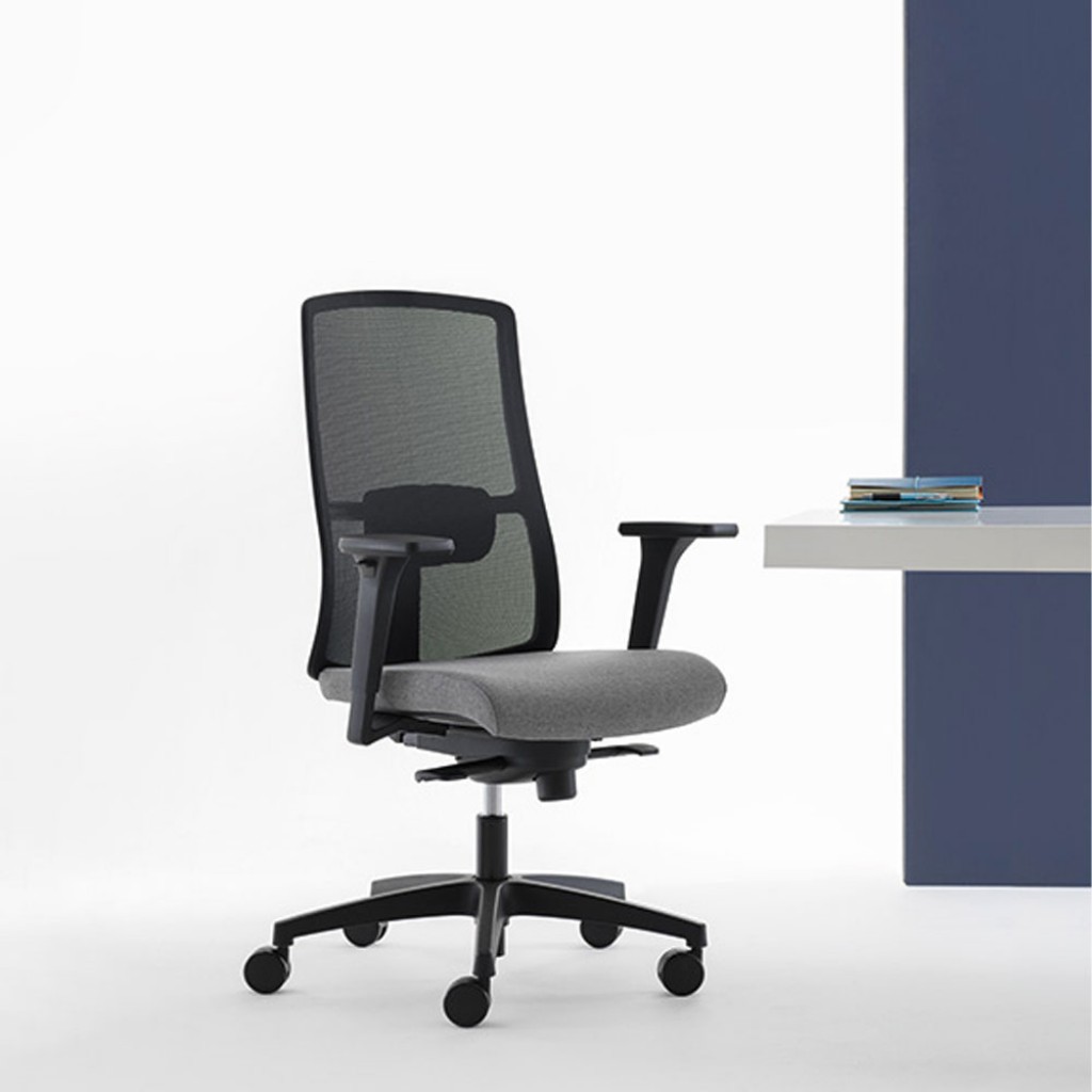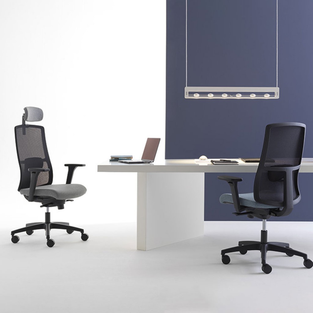 Intalnirea dintre linii usoare si forme fluide. Un scaun operativ structurat si distinct, cu sezut tapitat si spatar din mesh, cu structura disponibila in alb sau negru, completata de brate, baza si tetiera asortate.