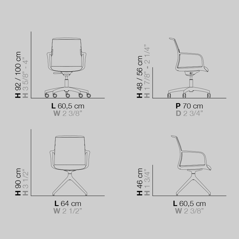 Scaun rotativ cu cotiere si cadru din aluminiu cu 4 reglaje. Sezut tapitat.Designer Luca NichettoDimensiuni.. -