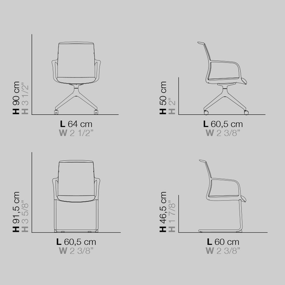 H10 este o colectie de scaune hibride cu un design esential si tehnic. Versatilitatea sa il face perfect adaptabil la diferite spatii si contexte.Dimensiuni:.. -