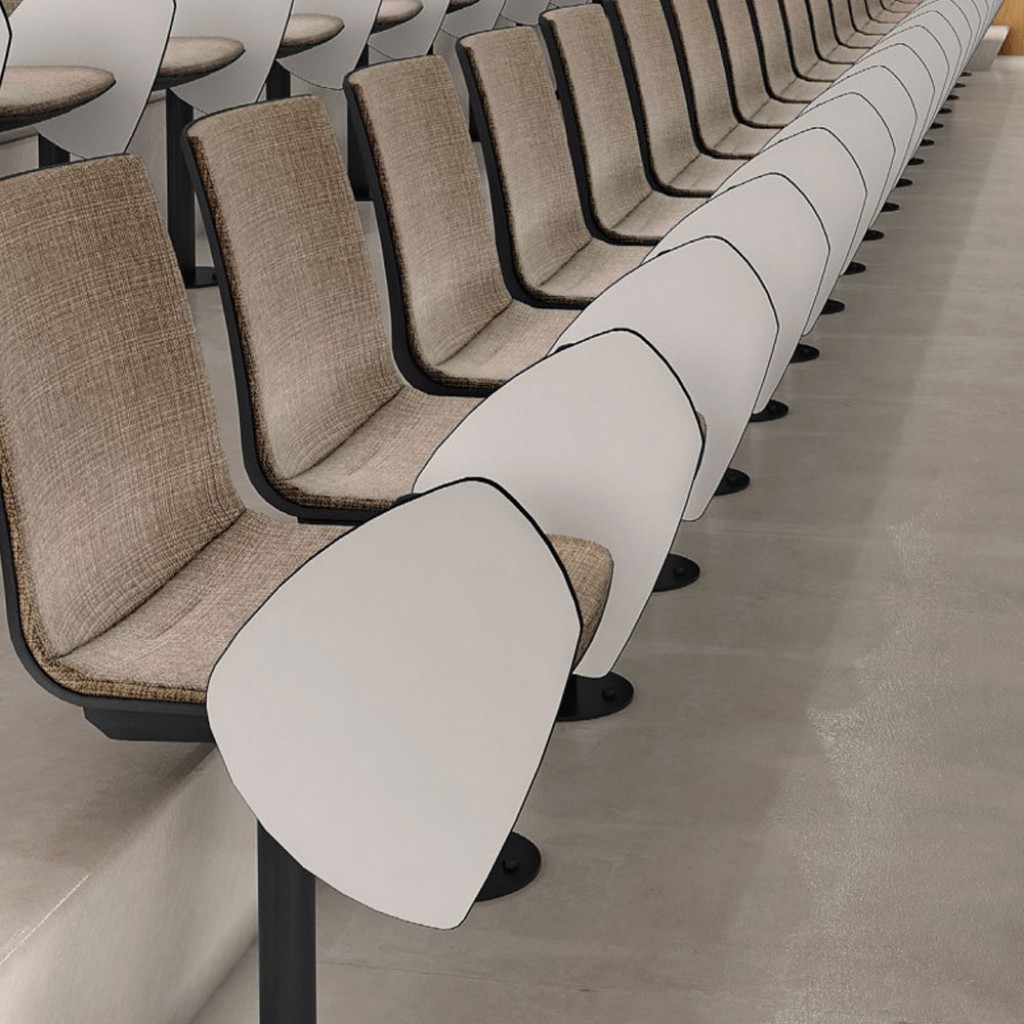 Omnia este un sistem de scaune multi-functional cu tablie de scris pentru salile de lectura. Este unic datorita formei ergonomice si robuste. Pentru Omnia, sistemul anti-soc binevenit in sal.. -