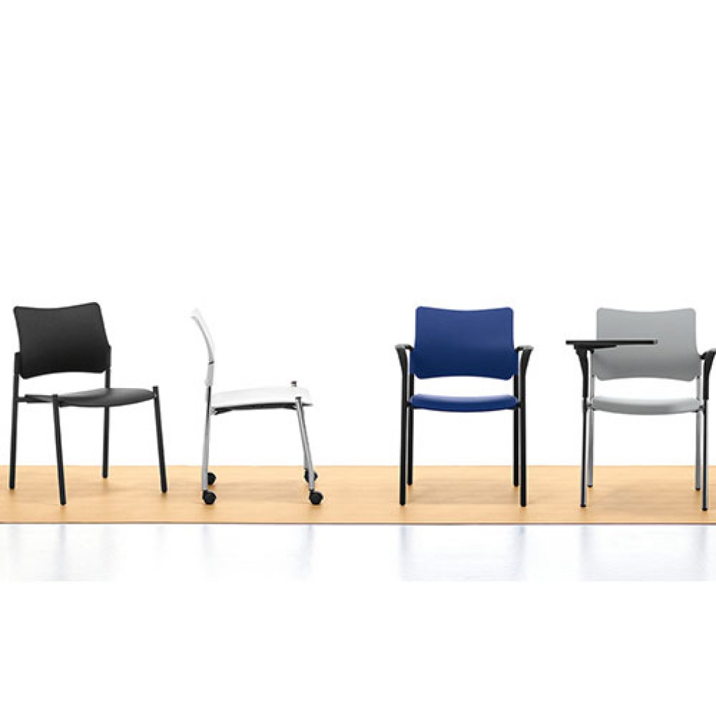 Scaun din polipropilena, disponibil in patru culori, potrivit pentru salile de sedinta si salile de antrenament. Poate fi dotat cu roti, poate fi cu sau fara cotiere.