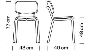 Scaun cu cadru din otel cu 4 picioare. Sezutul si spatarul sunt din sarma PVC cu finisaj mat.Designer R&DDimensiuni.. -