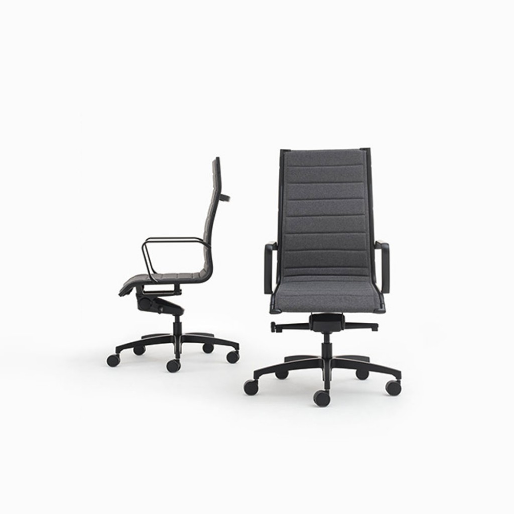 Inspiratie din secolul XX. Colectia manageriala, formata din fotoliu cu spatar inalt si scaun pentru vizitatori, disponibile cu trei tipuri de baze, Aalborg Line se remarca printr-un design de calitate care depaseste barierele timpului, imbinand caracterul clasic cu cel modern.