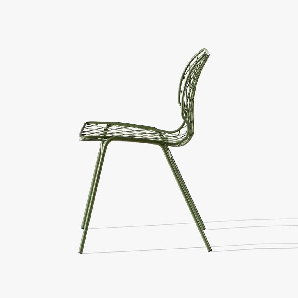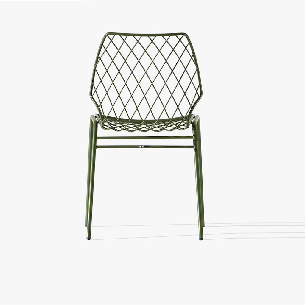 Scaun cu cadru din otel cu 4 picioare. Sezutul si spatarul sunt din cadru de otel.