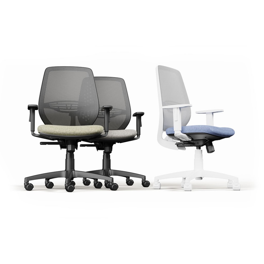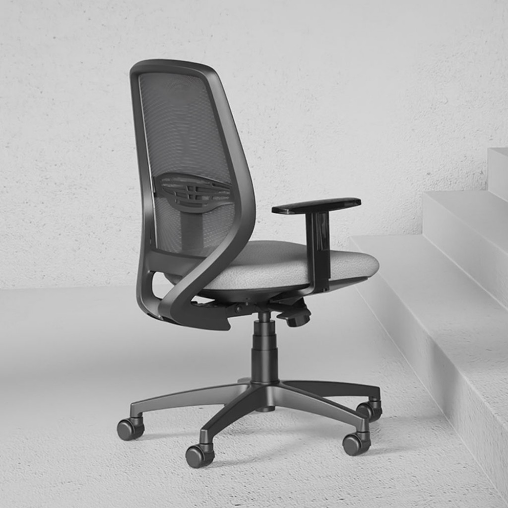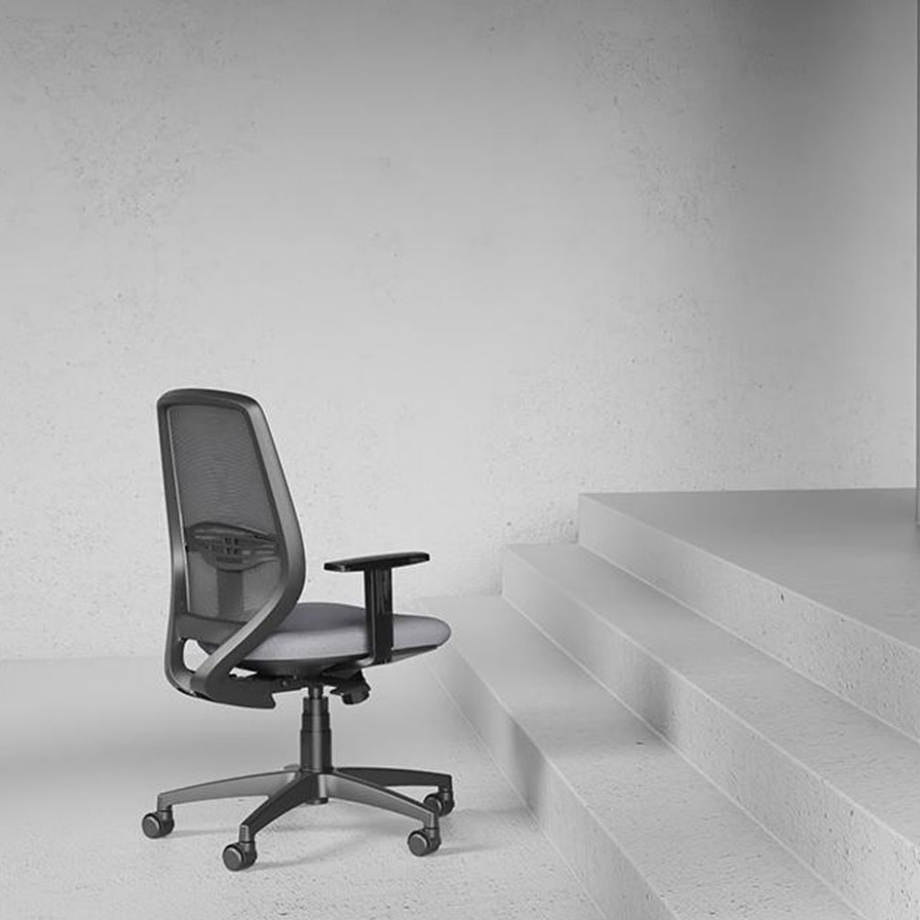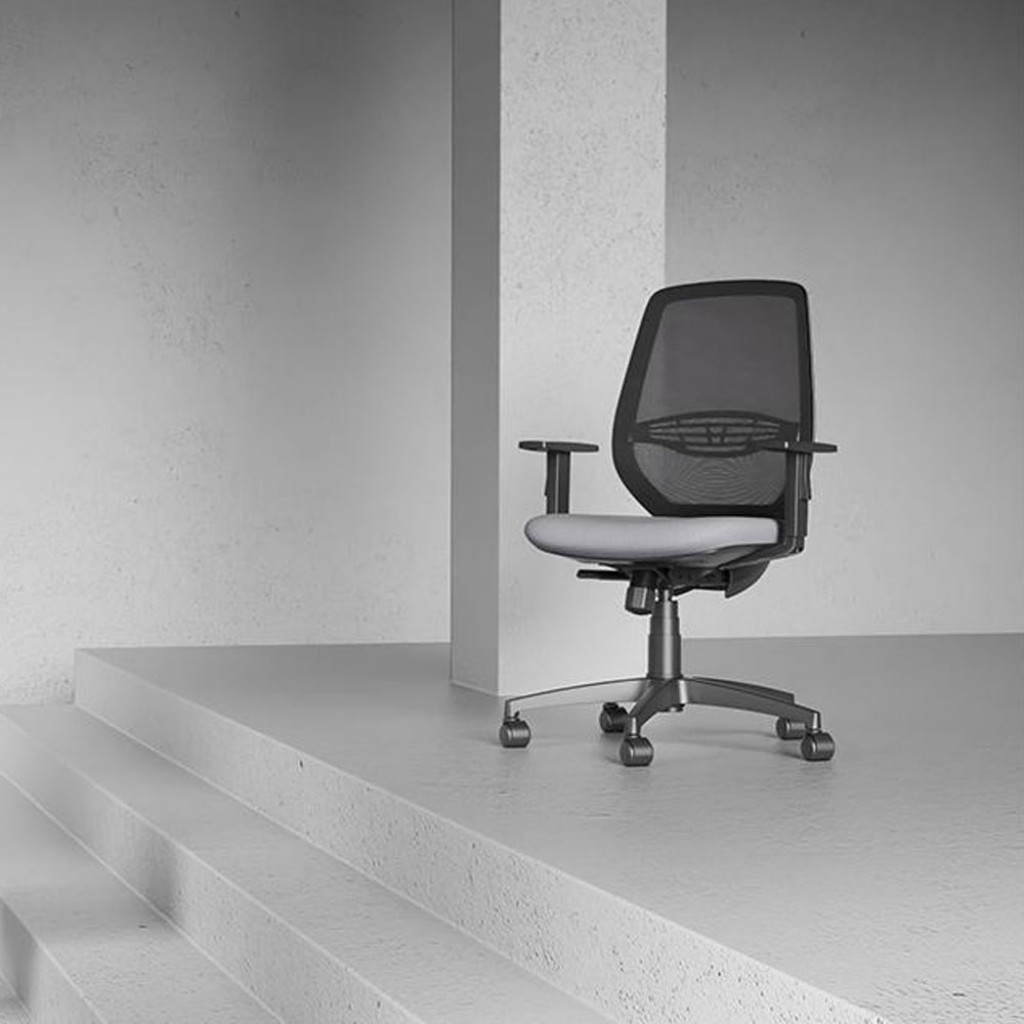 T10 este un scaun de lucru cu linii curate si esentiale, perfect pentru utilizare intensiva si profesionala. Spatarul confortabil din plasa este prevazut cu un suport lombar reglabil.