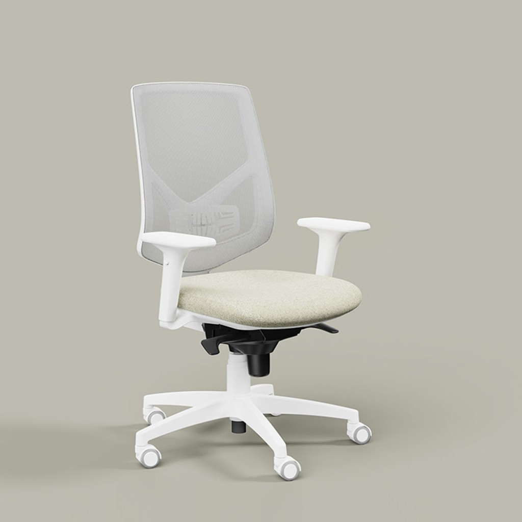 Intalnirea dintre linii usoare si forme fluide. Scaun operativ cu sezut tapitat si spatar din mesh, cu structura alba sau neagra si componente asortate.Dimensiuni.. -