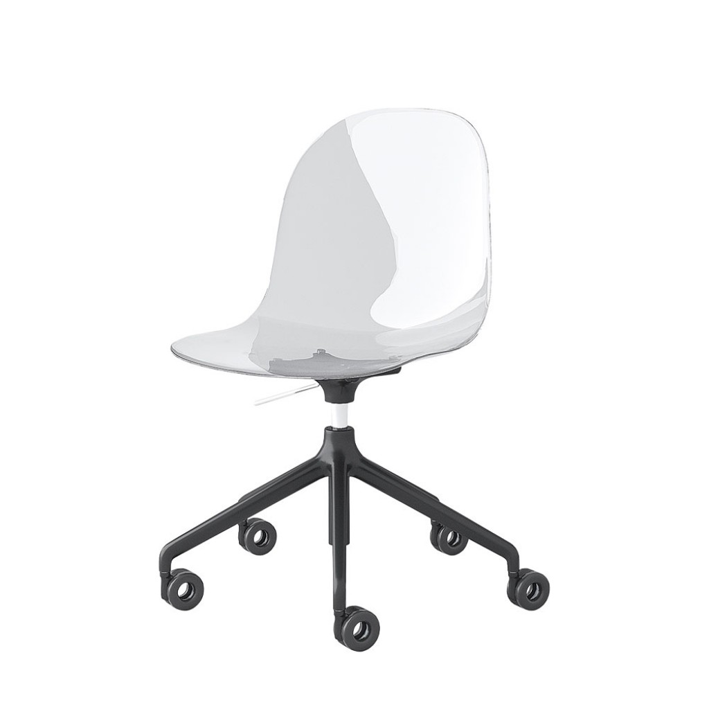 Scaunul Academy, best seller al colectiei Connubia, se imbogateste cu varianta scaunului din policarbonat transparent. Versatilitatea acestui model continua si se confirma ca fiind un must-have pentru cei care isi doresc confort si stil intr-un singur scaun.
