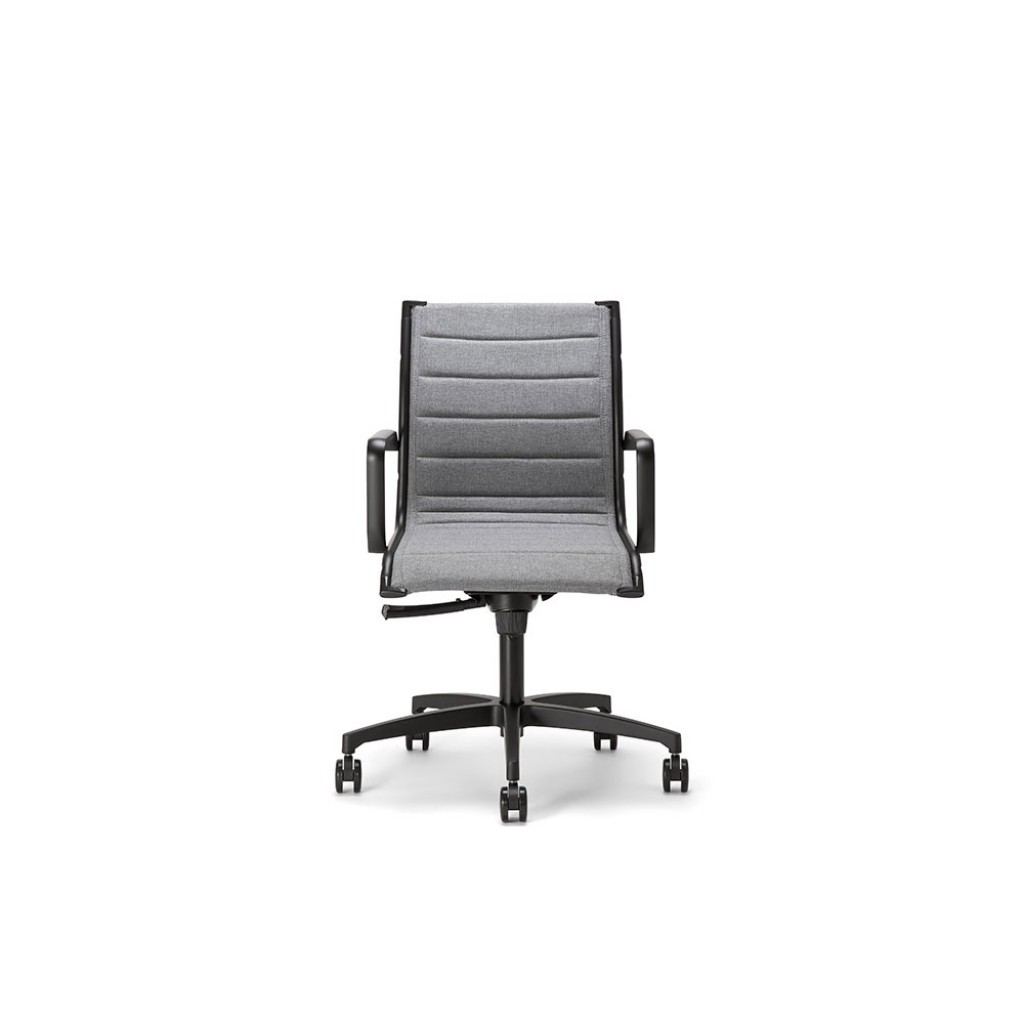 Intalnirea dintre linii usoare si forme fluide. Un scaun operativ structurat si distinct, cu sezut tapitat si spatar din mesh, cu structura disponibila in alb sau negru, completata de brate,..