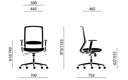 T30 este un scaun de lucru care face din confort si ergonomie punctele sale forte. Este ideal pentru utilizare zilnica si prelungita, datorita diferitelor declinatii disponibile.Dimensiuni:.. -