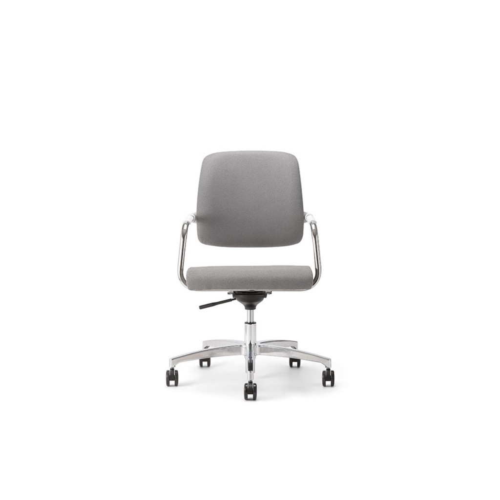 Intalnirea dintre linii usoare si forme fluide. Un scaun operativ structurat si distinct, cu sezut tapitat si spatar din mesh, cu structura disponibila in alb sau negru, completata de brate,.. -