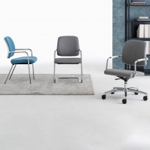 Dedicat oaspetilor. Fotoliu complet tapitat pentru spatii de lucru, asteptare sau meeting, disponibil cu diverse tipuri de baze si carcasa alba sau neagra.