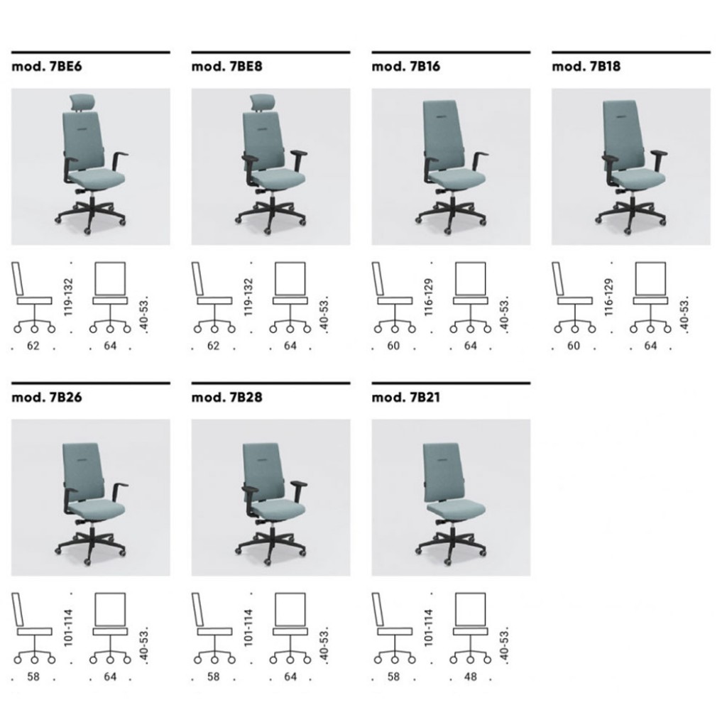 Scaunul operativ Zero 7 Elegant beneficiaza de un spatar complet captusit. Este disponibil in mai multe variante: cu sau fara tetiera, cotiere fixe sau ajustabile, picioare cu roti sau baza fixa. Toate aceste solutii sunt incluse intr-un design versatil care se adapteaza perfect nevoilor dumneavoastra. Spre deosebire de varianta Zero 7 acest model de scaun poate beneficia si de varianta cu tetiera extrem de confortabila si relaxanta.