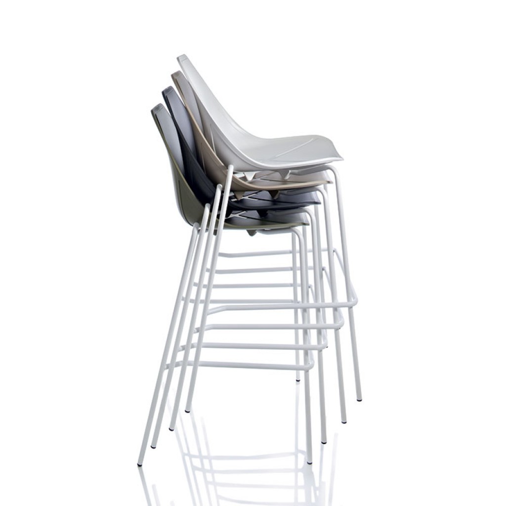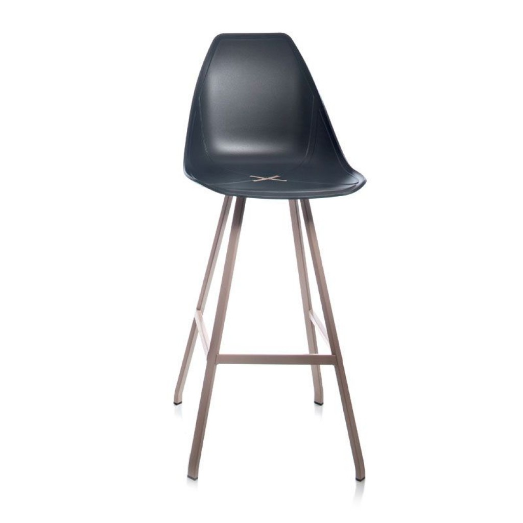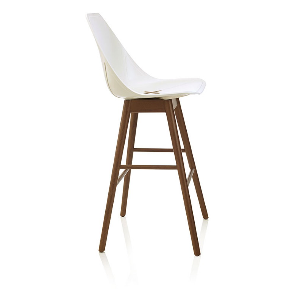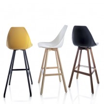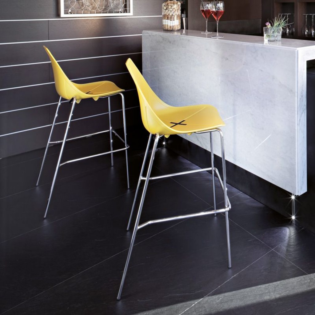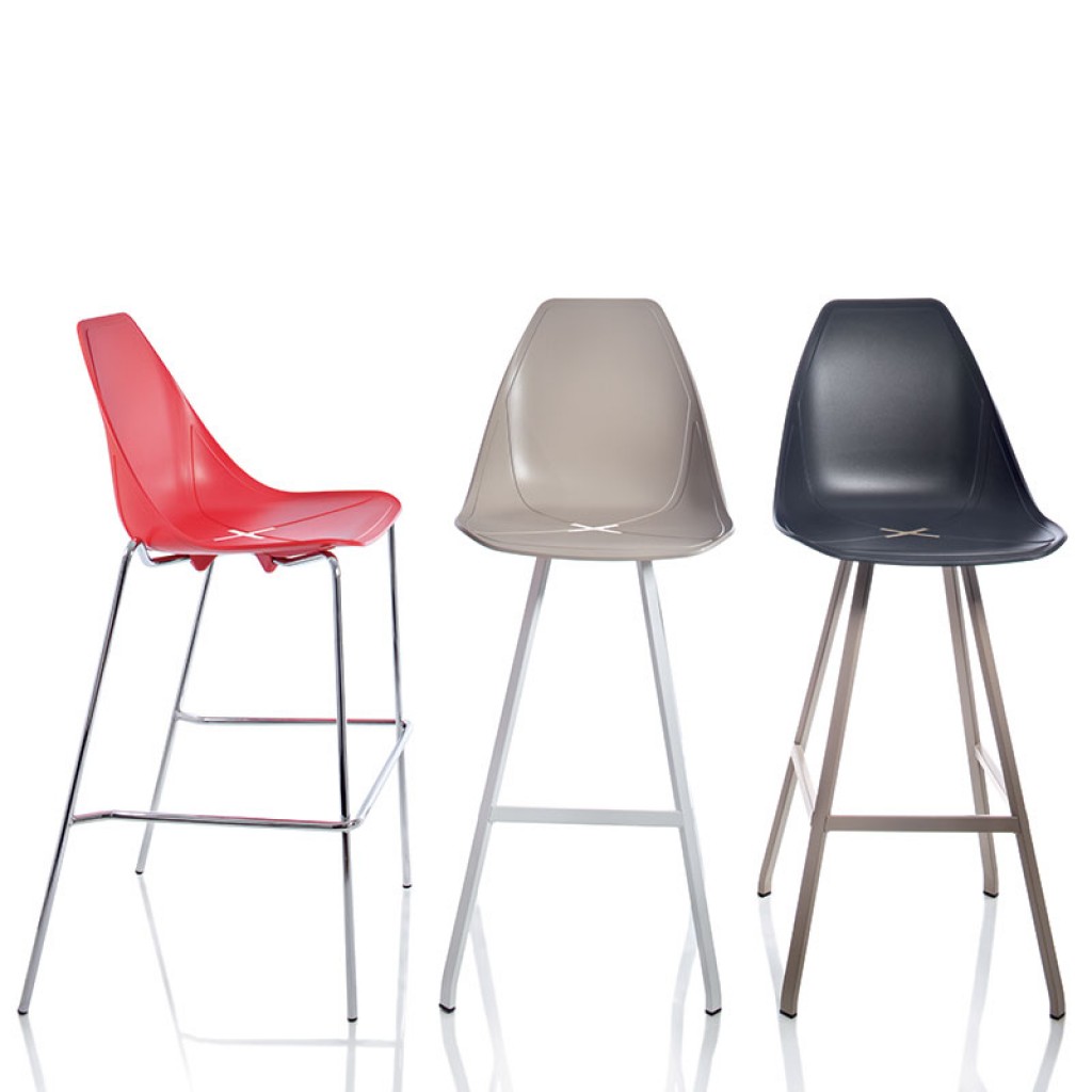 X Stool este un scaun pentru bar din otel cromat sau lemn vopsit, cu patru picioare sau sub forma de cadru, cu suport in zona inferioara. Carcasa este din copolimer, disponibil pe doua variante de inaltime.