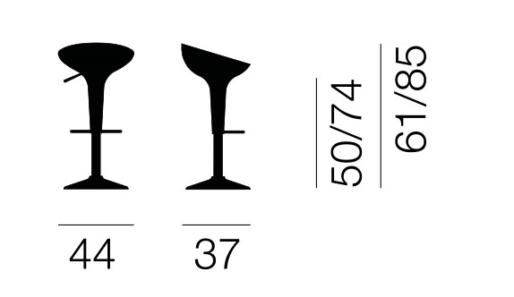 Al Bombo este un scaun pentru bar ajustabil pe inaltime datorita unei pompe.
