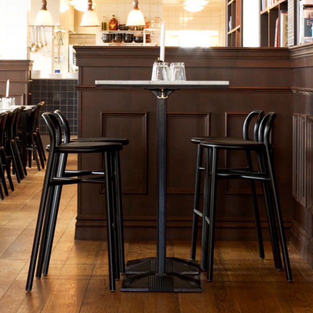 Designer Konstantin GrcicMateriale folosite: fonta tratata cataforetic si vopsita in pulbere de poliester, top din HPL, marmura carrara sau marquinia. Potrivita si pentru utilizare in aer li.. -