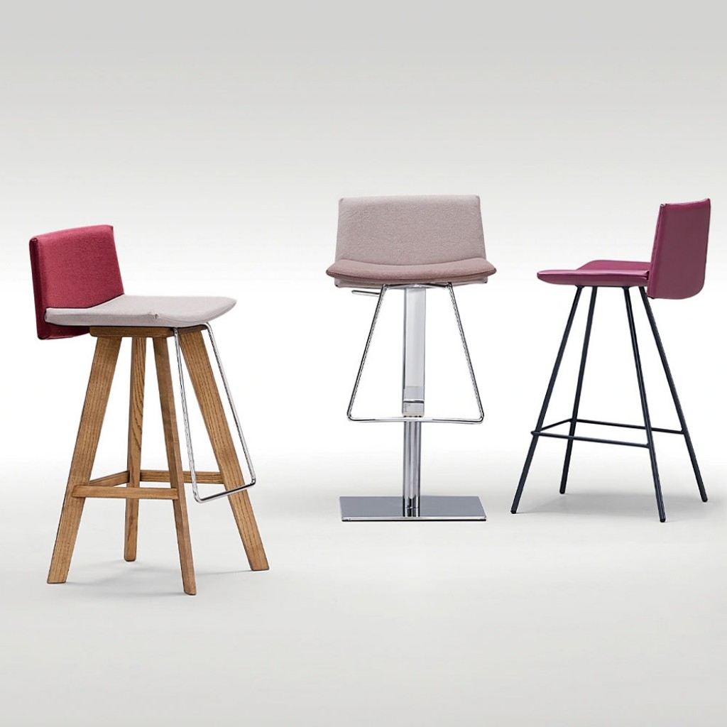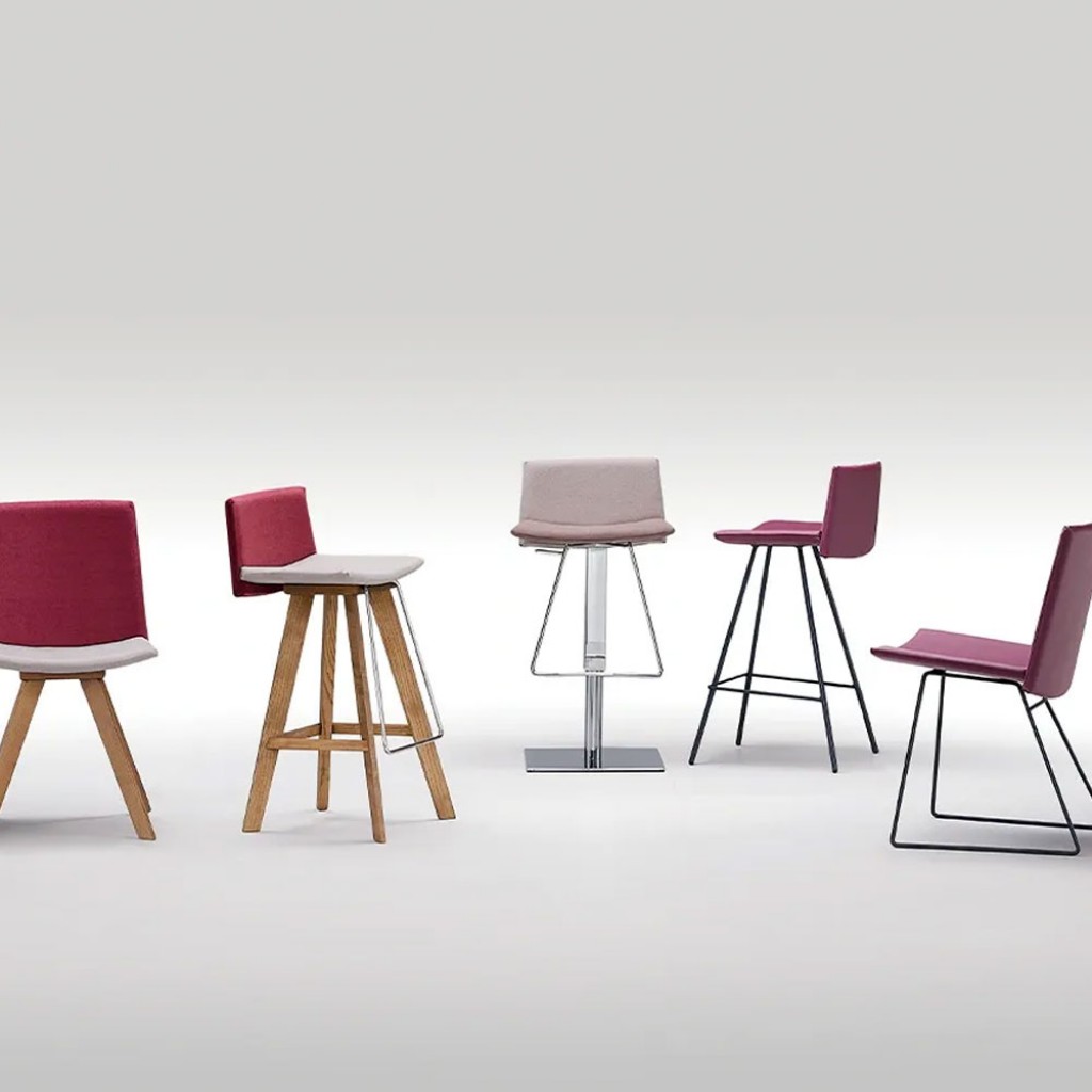Scaunul pentru bar de designer Flag se caracterizeaza printr-o dubla structura – spatar si sezut – care se imbina armonios pentru a crea un design modern si inovator. Tapiteria celor doua componente poate fi realizata intr-o gama variata de culori, generand contraste inedite si fascinante. O combinatie de minimalism si dinamism, potrivita pentru bucatarii si spatiile din industria ospitalitatii, adaptandu-se unor stiluri si cerinte diverse, dar cu o atentie deosebita la detalii si calitate.