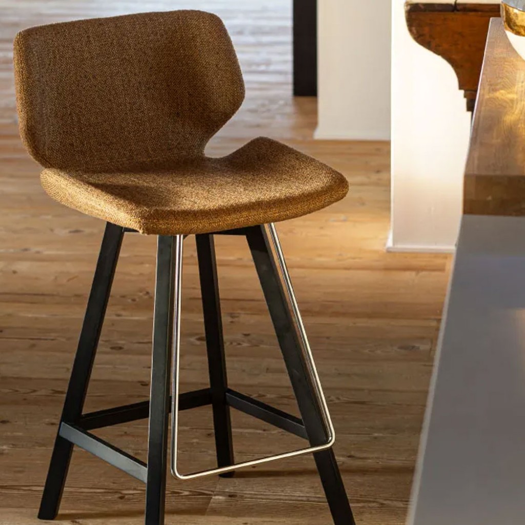 Scaunul pentru bar de designer Sinuosa face parte dintr-o familie de scaune cu linii moi si imbratisatoare, dar, in acelasi timp, puternice si moderne. Combinatia dintre cadrul metalic si fo.. -