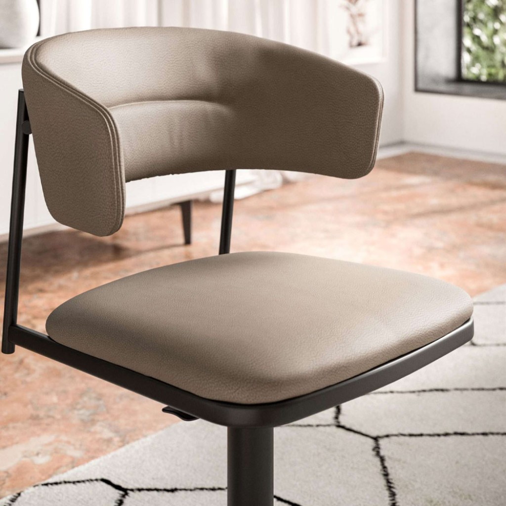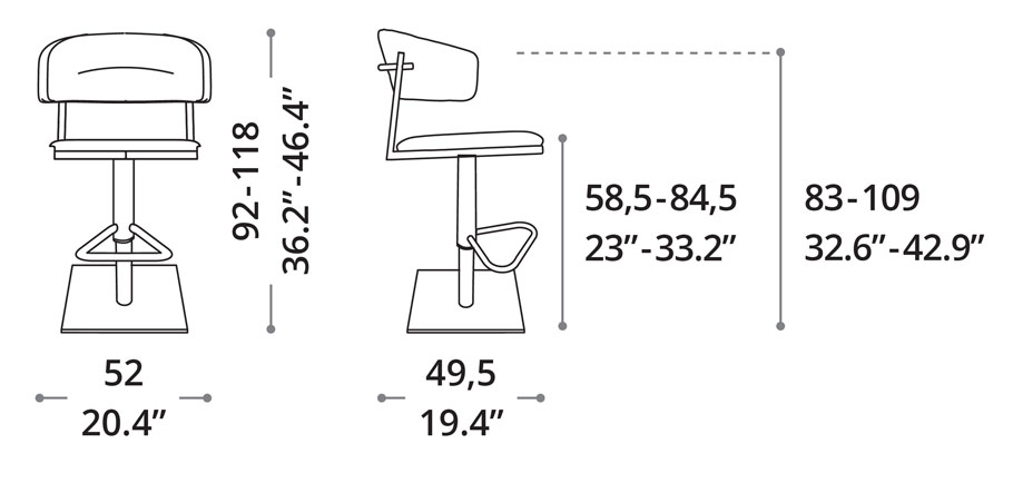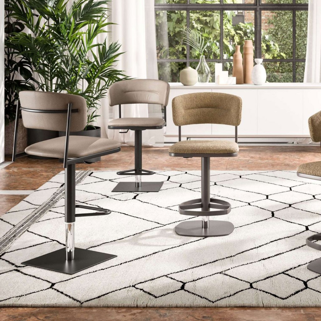Scaun pentru bar pivotant, disponibil cu sau fara cotiere, spatar si sezut din material textil, in diferite nuante.Dimensiuni:Inaltime - 101-127 / 58-84 cm.. -