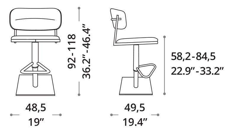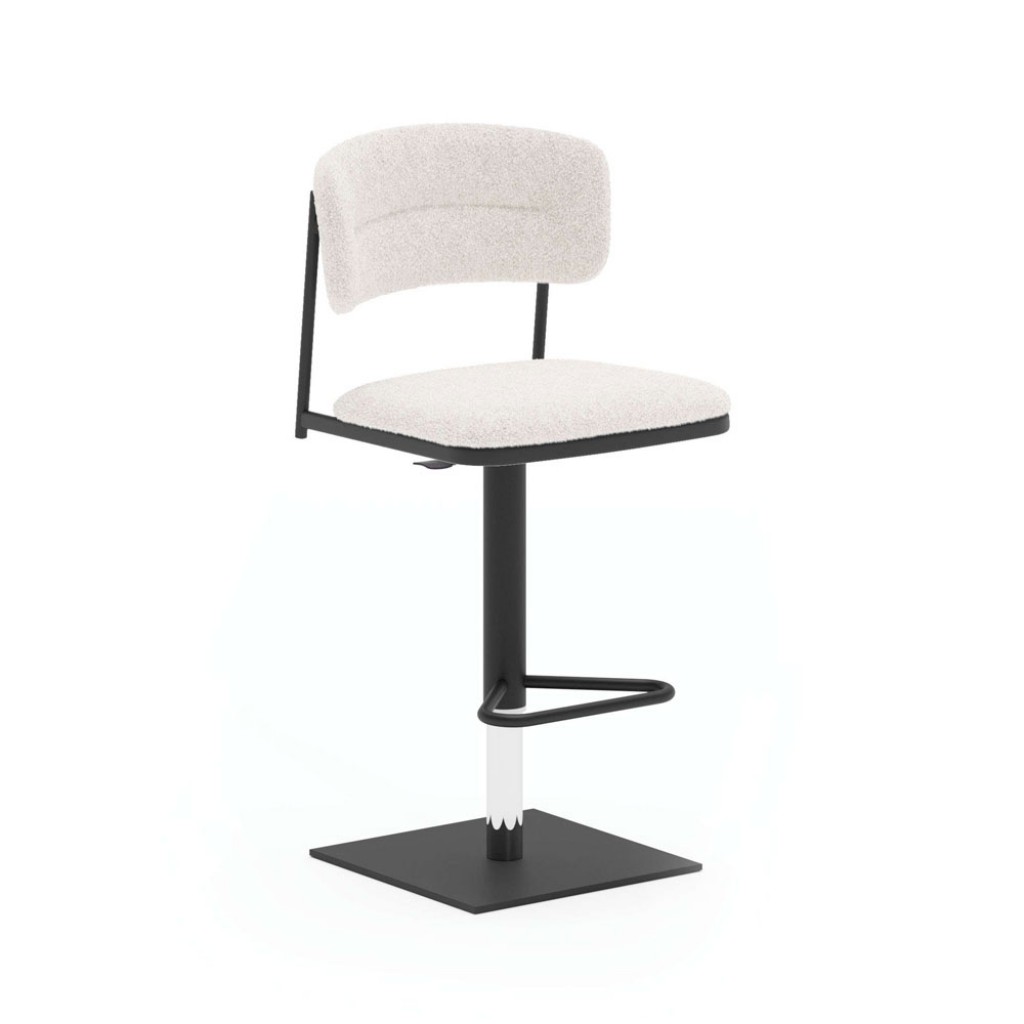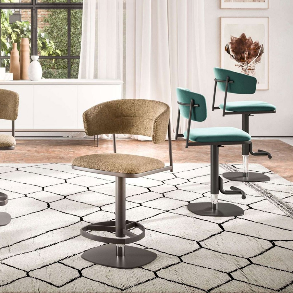 Cod: S509 - Design: Studio OzetaScaun pentru bar cu dispozitiv de ridicare, acoperit cu piele moale, piele eco nabuk sau catifea si structura metalica. Pe partea interioara a scaunului .. -