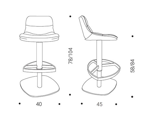 Scaun pentru bar pivotant, disponibil cu sau fara cotiere, spatar si sezut din material textil.Dimensiuni:Inaltime - 104-130 / 58-84 cm.. -