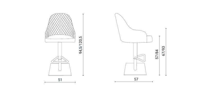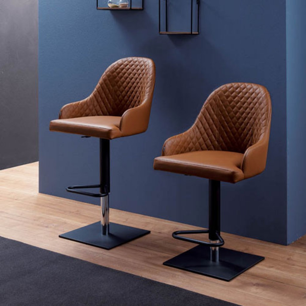 Scaun pentru bar cu dispozitiv de ridicare, acoperit cu piele moale, piele eco nabuk sau catifea si structura metalica.