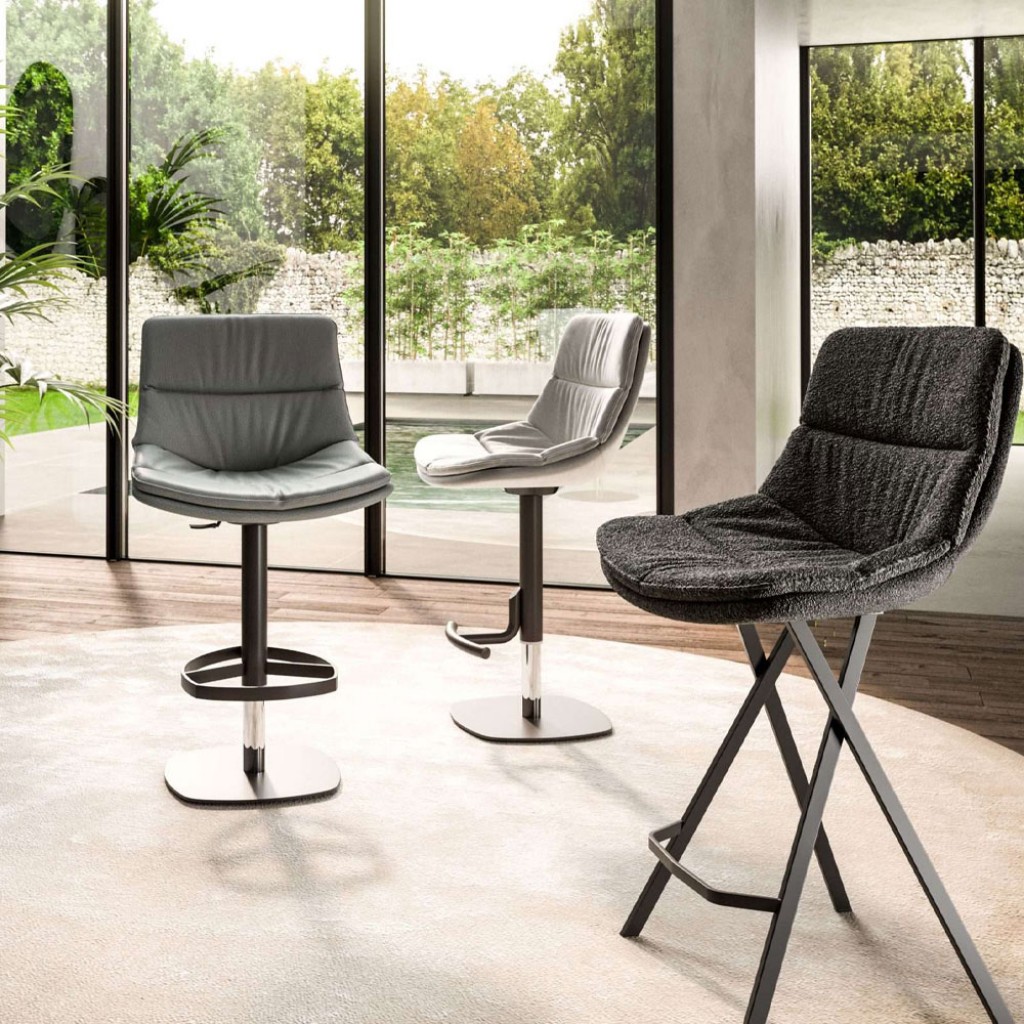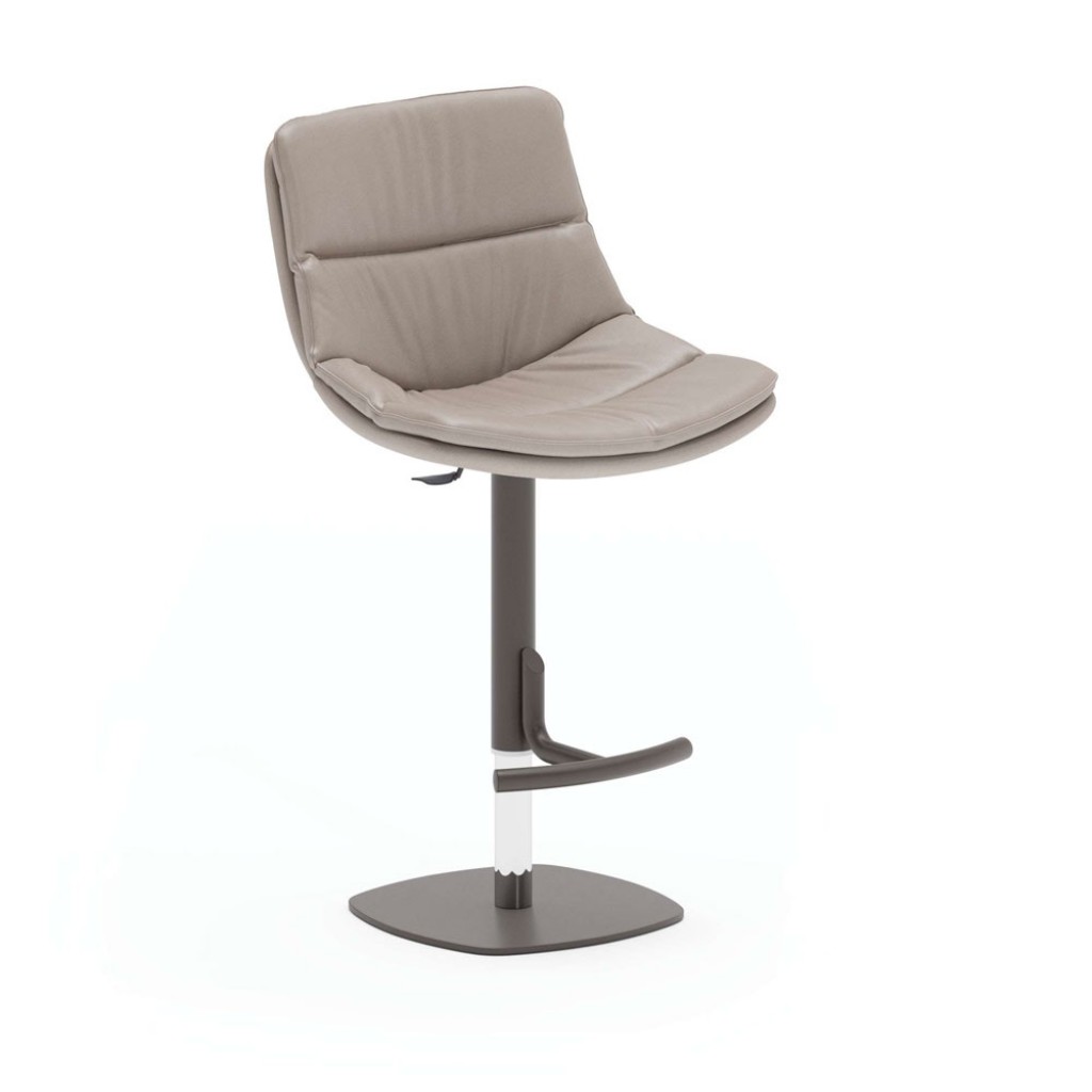 Aceeasi expresie a armoniei dintre forme, linii fluide si materiale moi defineste colectia Coco, Noa, Scott si Roy. Cusaturile fine, atent realizate, accentueaza eleganta sezutului. Varietatea bazelor si finisajelor ofera posibilitatea de personalizare, pentru un rezultat estetic deosebit. Scott este un scaun de bar cu mecanism de ridicare pe gaz, baza si suport pentru picioare din metal. Sezutul este disponibil in diverse finisaje.