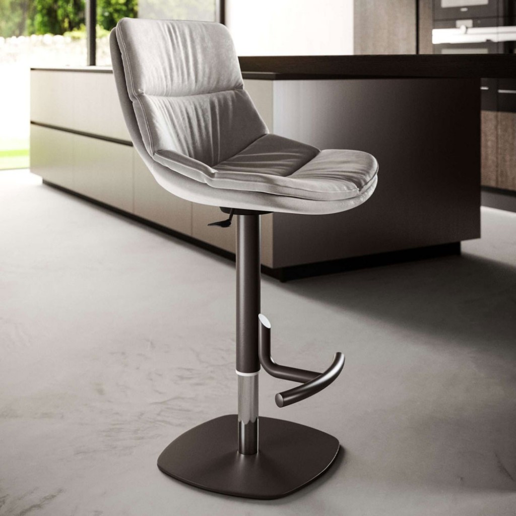 Cod: S550 - Design: Studio OzetaScaun pentru bar cu structura metalica si dispozitiv de ridicare, acoperit cu piele moale sau catifea.. -
