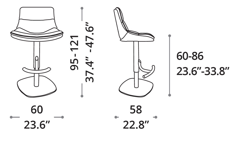 Scaun pentru bar pivotant, disponibil cu sau fara cotiere, spatar si sezut din material textil, in diferite nuante.Dimensiuni:Inaltime - 101-127 / 58-84 cm.. -