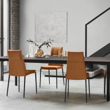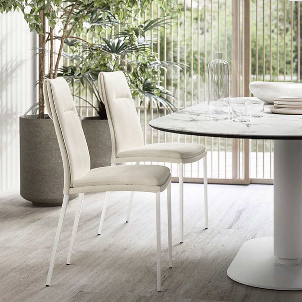 Lois este un scaun modern care poarta eleganta atemporala a materialului matlasat: in acest model, prelucrarea rafinata a pielii ecologice pe partea frontala a spatarului reprezinta semnatur.. -