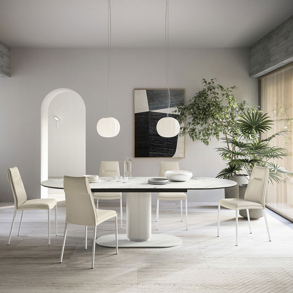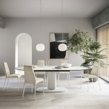 Dogma este o masa extensibila de dimensiuni generoase, conceputa pentru confort. Forma dreptunghiulara simpla se intalneste cu caldura picioarelor din lemn fin lucrat, exprimand in acelasi t.. -