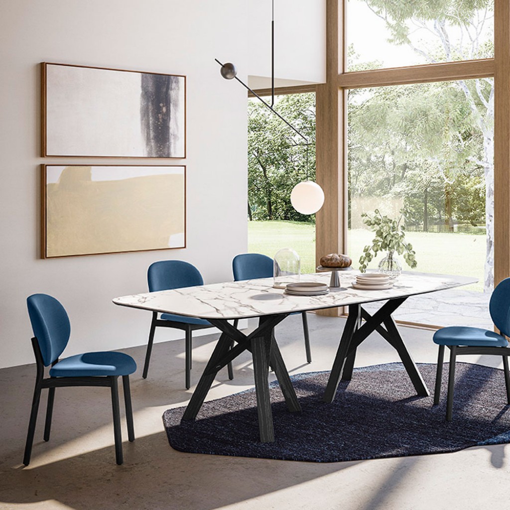 Cu o estetica eleganta, masa Apian adopta o abordare de design arhitectural si a fost realizata cu meticulozitate din materiale rafinate. Look-ul aerisit aminteste de o tabla de metal curbat.. -