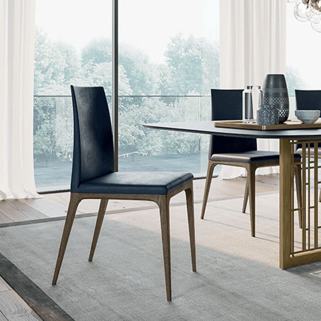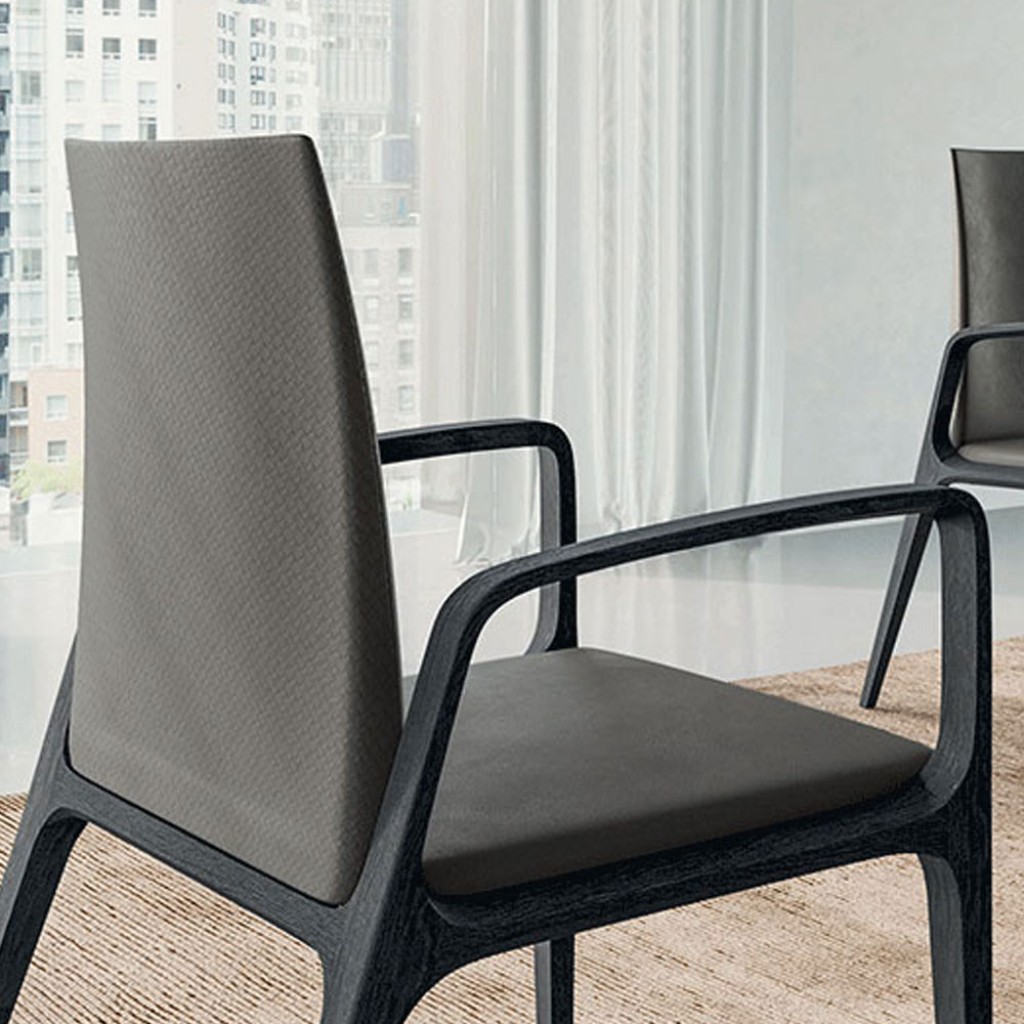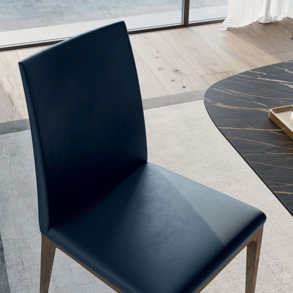 Wendy este un scaun pentru dining elegant, din lemn, cu un spatar generos, tapiterie din tesatura sau piele ecologica.