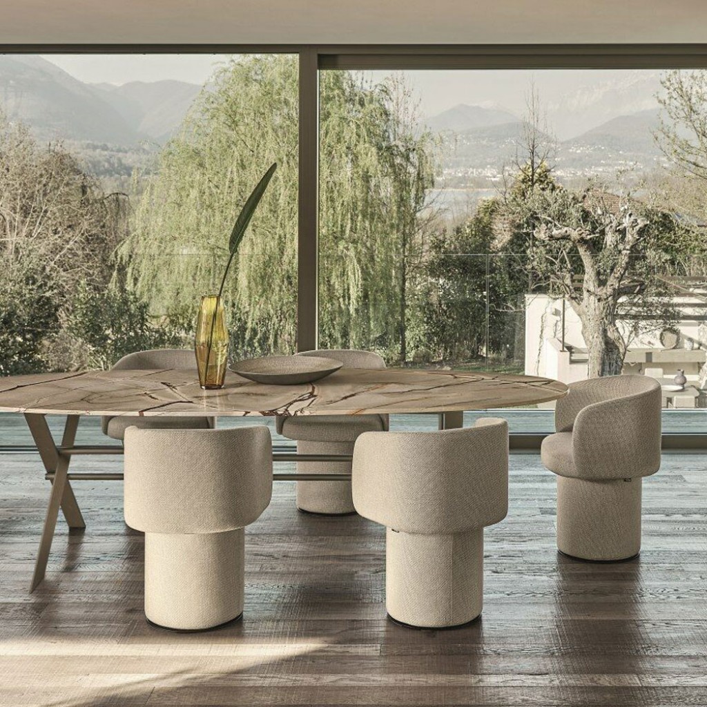 Archie reinterpreteaza fotoliul tapitat de sufragerie printr-un joc de volume suprapuse, un element de mobilier elegant si spatios.Design by Busetti - Garuti - Radaelli.. -