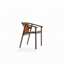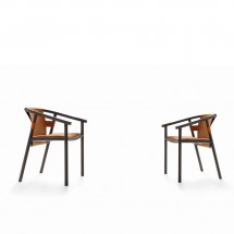 Colectie sofisticata de scaune de interior cu o structura eleganta din lemn si sezut/spatar din piele.