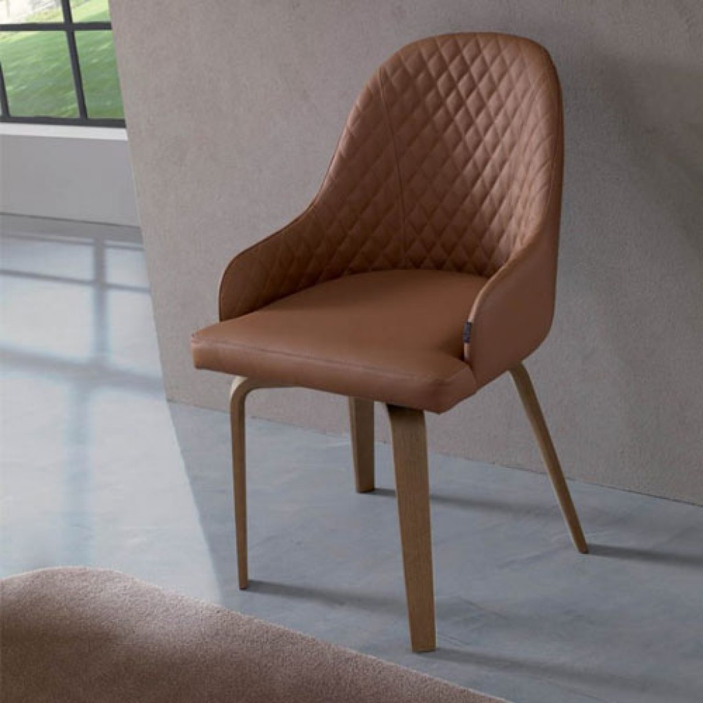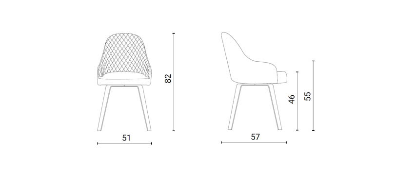 Tuka este un scaun cu patru picioare din lemn si tapiterie atat la sezut cat si la spatarul de tip carcasa.Dimensiuni:Inaltime:76-47-65 cmLungime: 55 cmLatime: 56 cm..