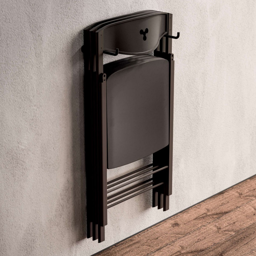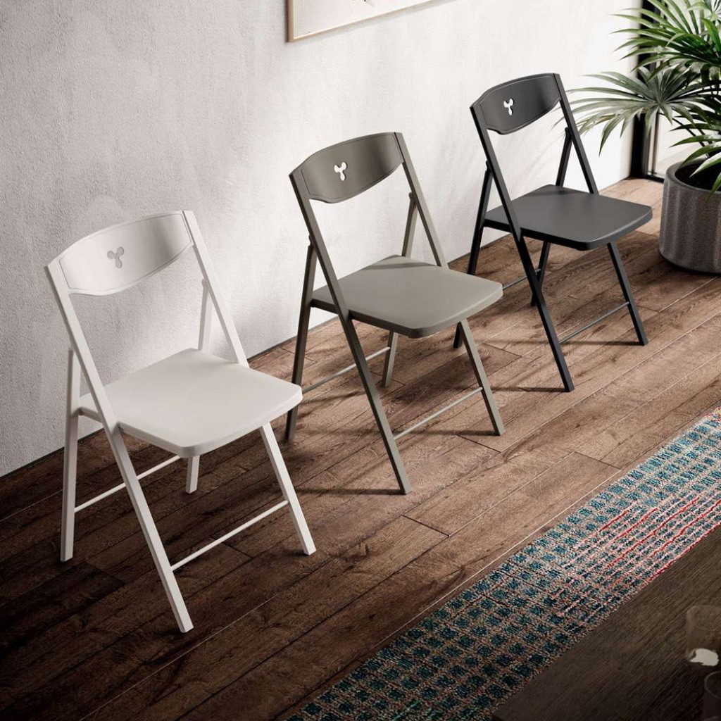 Scaun pliant cu un design proaspat si esential, cu structura metalica, sezut si spatar din polipropilena. Designul sau liniar il face complementul ideal pentru versiunile de masa cu „economie de spatiu” si pentru mediul informal de bucatarie-sufragerie. Scaun pliabil cu structura metalica, sezut si spatar din material plastic.