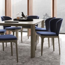 Scaun cu design contemporan din lemn de fag sau frasin. Spatarul si sezutul sunt din placaj din lemn presat, captusite cu spuma poliuretanica elastica, in diferite nuante.