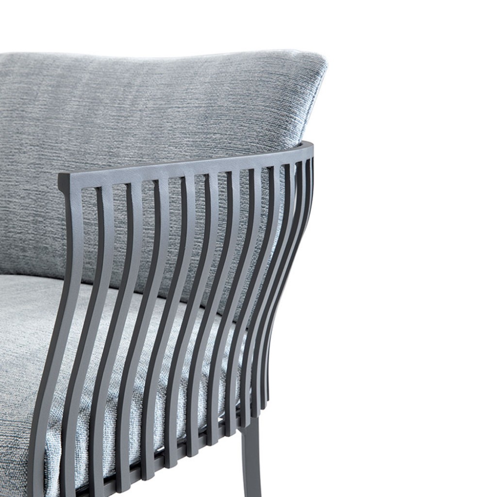 Venexia exprima eleganta mobilierului urban la sfarsitul secolului XIX, intr-un proiect ce combina farmecul atemporal cu functionalitatea moderna. Structura din aluminiu aminteste vizual de vechile balustrade, iar pernele moi realizate sunt din materiale reciclate si complet impermeabile, ideale pentru exterior.